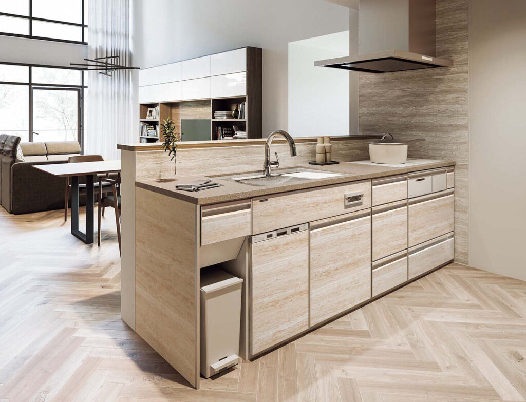 限られたスペースでも、レイアウトを工夫すれば快適なキッチンに変わります。「I型」「L型」「アイランド型」「ペニンシュラ型」など、さまざまなスタイルから選べるため、暮らし方や家族の動線に合わせた配置が可能です。無駄のない動きと視線の抜けを意識すれば、広く感じる開放的なキッチンが実現します。
