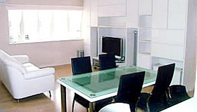 白を基調とする家具に良く合うように部屋全体をシンプルなデザインに仕上げ、スタイリッシュな空間を演出しています。